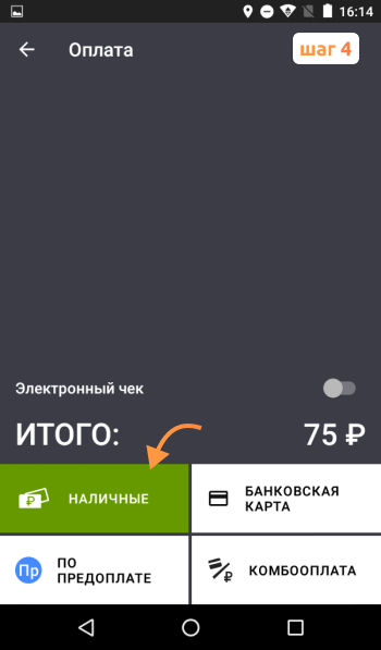 - Указываем способ оплаты: картой, наличными, по предоплате или комбинированный.