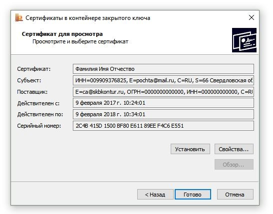 5. В следующем окне нажмите кнопку Далее; в окне Сертификат для установки нажмите Далее.