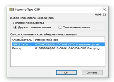 9. Если КриптоПро CSP запрашивает pin-код от контейнера, введите нужный код или попробуйте стандартные pin-коды носителей (список ниже):