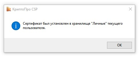 11. Сертификат установлен. Можно закрыть все открытые окна КриптоПро.